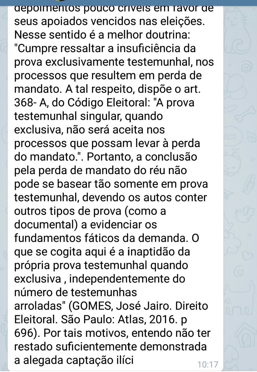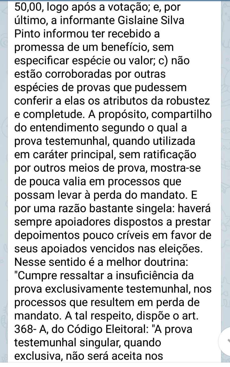 Segundo consta na decisão do juiz eleitoral Edivaldo Landeosi, datada do último dia 5, que considerou improcedente os pedidos e mandou extinguir o processo com resolução de mérito, “a prova exclusivamente testemunhal é insuficiente quando utilizada em caráter principal, sem ratificação por outros meios de prova, mostra-se de pouca valia em processo que possam levar à perda do mandato”. O julgamento do juiz foi feito em consonância com o opinamento do Ministério Público Eleitoral.