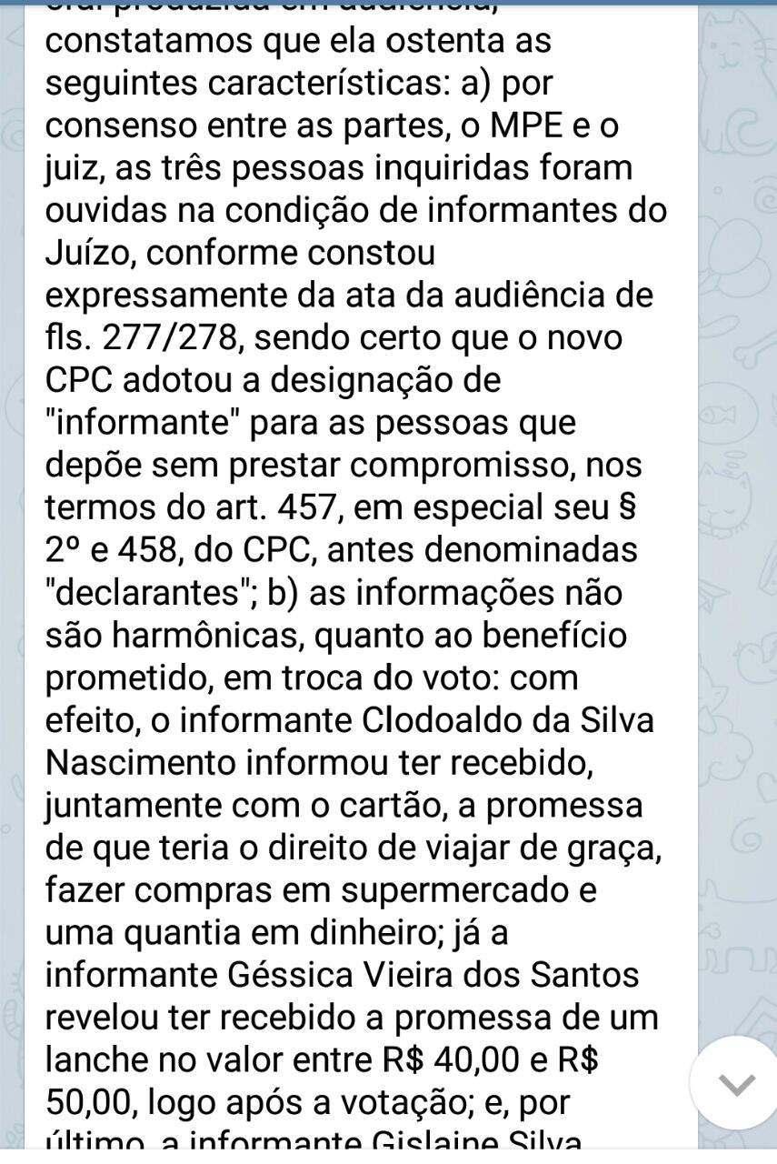 Só para lembrar, nas eleições municipais realizadas no dia 2 de outubro de 2016, Dr. Flavinho, advogado tributarista, 51 anos de idade, venceu a disputa majoritária por ter obtido 7.901 votos (54,21%). Já seu primo e adversário Dr. Eraldinho, médico, 42 anos de idade, foi o segundo colocado com 6.644 votos (45,21%). Leia abaixo seis páginas da sentença do juiz eleitoral Edivaldo Landeosi. A reportagem do Notícia Quente teve acesso a uma cópia da sentença por meio de uma fonte que pediu para não ter seu nome revelado.