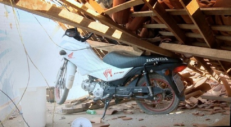 O telhado de uma das salas, que fica perto da entrada da escola, desabou pouco antes do início das aulas, no momento em que os estudantes entravam em sala. Do lado de fora, uma moto foi atingida pelos escombros.